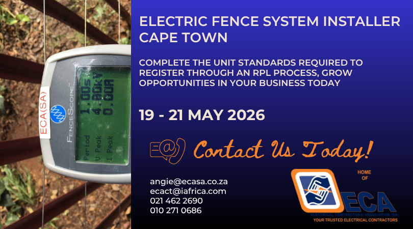 Take your business to the next level with the Electric Fence System Installer course in Cape Town! Join us from 19–21 May 2026 to complete the unit standards required for registration through an RPL process. Don’t miss this opportunity to expand your skills and grow your business.